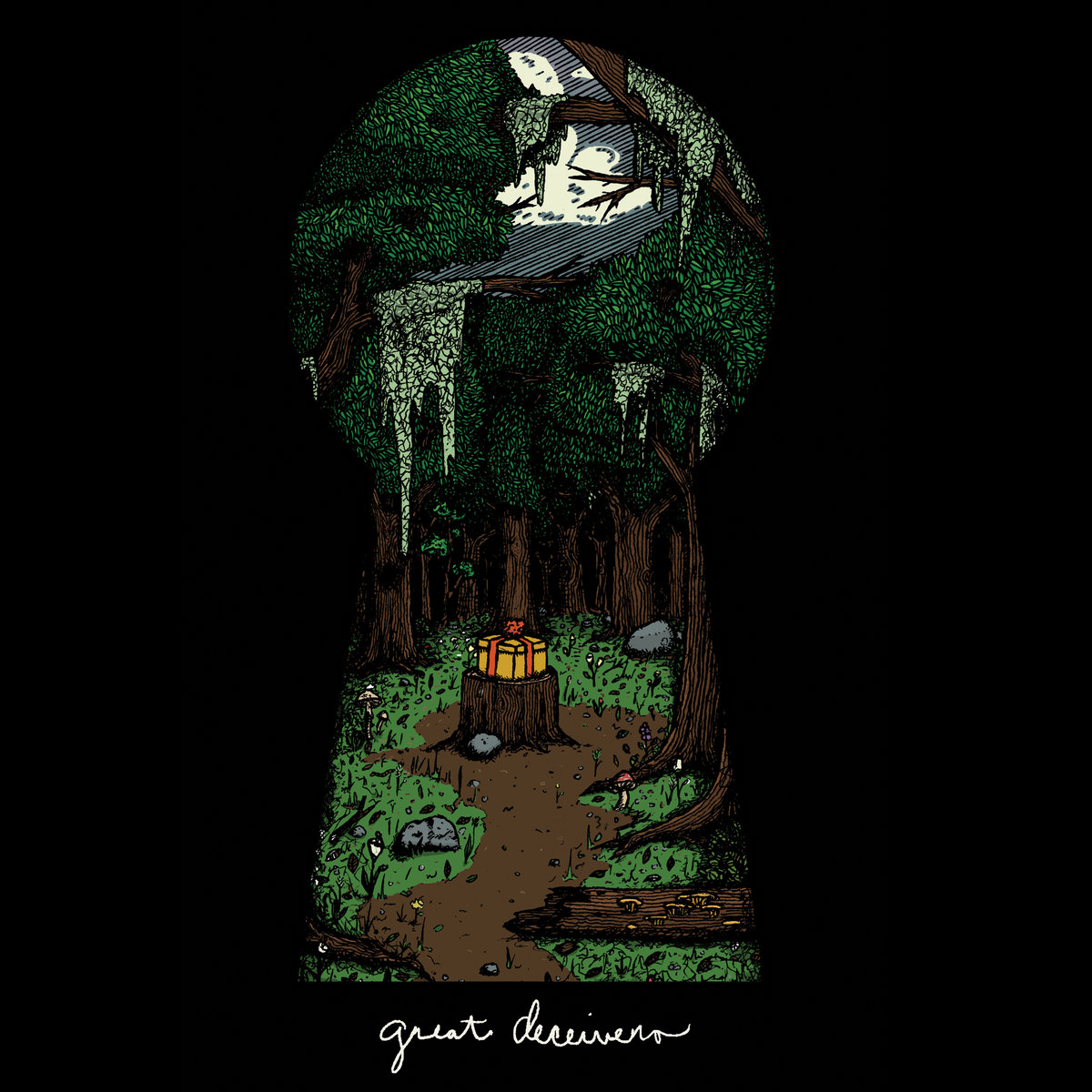 Our self-titled album is out on limited edition cassette through Landland Colportage on 4/30/2021. Also available as a bundle with a special (& very limited) art print version of a drawing by DNL HRS that connects to the Great Deceivers cassette art.